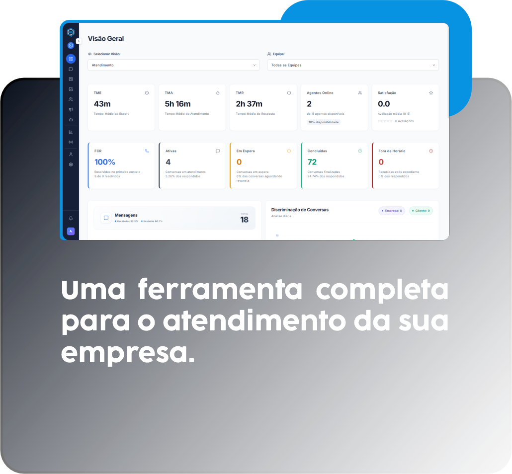 Somos uma empresa líder em soluções de atendimento e Vendas, oferecendo suporte completo e integração para empresas com mais de 06 anos no mercado, mais de 10 mil clientes e 08 países atendidos