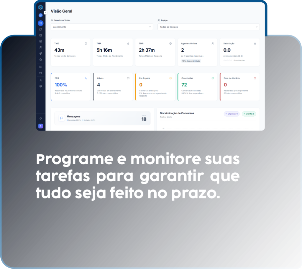 Maximize a Eficiência do Seu Time Melhore a produtividade do seu time com ferramentas avançadas de gestão e comunicação. Nossa plataforma permite a integração de múltiplos canais e oferece suporte 24/7 para garantir que sua equipe esteja sempre conectada e funcionando sem problemas.
