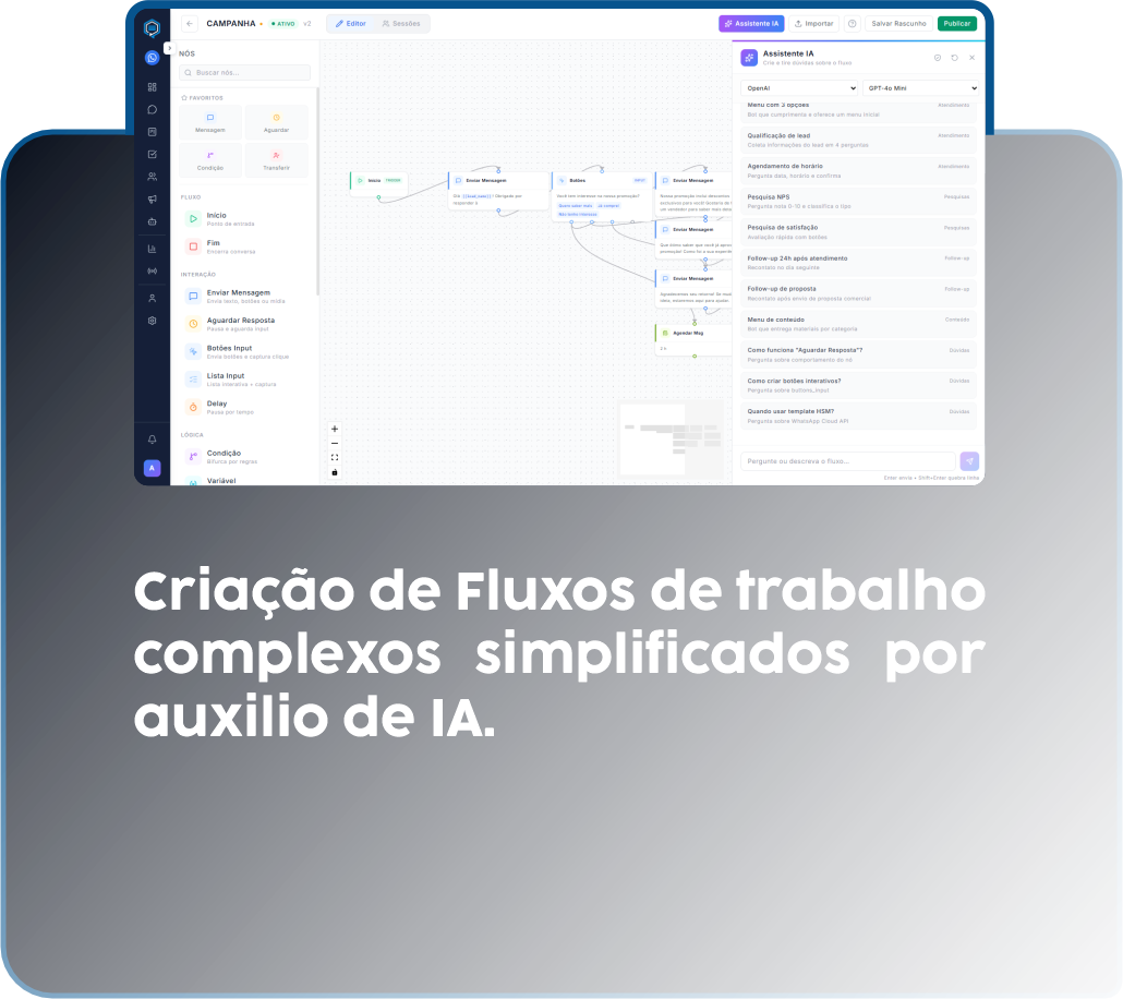 Ofereça atendimento seguro e suporte 24 horas por dia, com API Oficial, jornadas memoráveis para seus clientes, adaptadas a qualquer setor, usando o aplicativo de mensagens mais popular do mundo.